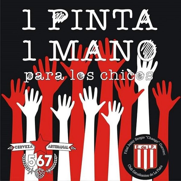 “Entre Cervecería Artesanal 567 y la Filial Jujuy Sergio «Chango» Gurrieri, del Club Estudiantes de La Plata, decidimos destinar el valor del 10% de las pintas que te tomes fuera de las promos para comprar mercadería de calidad alimentaria (leche, carnes y frutas), con el fin de incorporar a la dieta de los chicos que asisten a comedores las proteínas necesarias para su desarrollo físico y cognitivo. También, si querés participar trayendo ropa y juguetes en buen estado a la cervecería, los chicos te lo van agradecer. Salud! Filial Jujuy Chango Gurrieri de Estudiantes de la Plata».