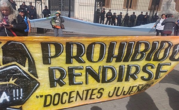 Docentes de todos los niveles se movilizaron este martes por el centro de San Salvador de Jujuy y culminaron la protesta con un abrazo simbólico a la Casa de Gobierno. La protesta se centró en los descuentos aplicados a los salarios por los días de paro, que se realizaron de manera arbitraria y en algunos casos llegaron a los 100 mil pesos. Esta tarde habrá una nueva marcha de antorchas en la que además reclamarán la nulidad de la nueva Constitución provincial.