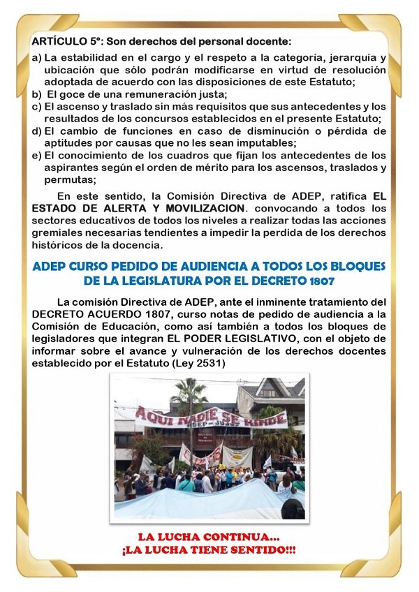 Considera que el decreto “avasalla los derechos establecidos en el estatuto docente” como la estabilidad en el cargo, el derecho al ascenso y traslado, entre otros.