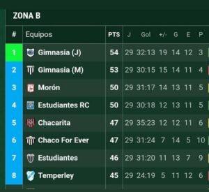 Gimnasia y Esgrima de Jujuy se convirtió en el único líder de la zona B, tras el empate entre Gimnasia de Mendoza y Nueva Chicago, que jugó este lunes, Fue 1 a 1.