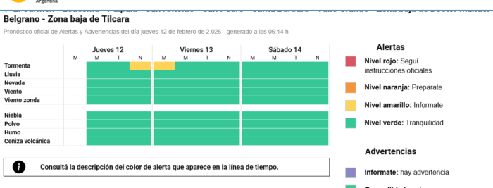 El Servicio Meteorológico Nacional emitió alerta amarilla desde la noche del jueves de comadre hasta la mañana de este viernes por fuertes tormentas para la zona de Valles y Yungas de Jujuy. Un día antes del inicio del Carnaval Grande.