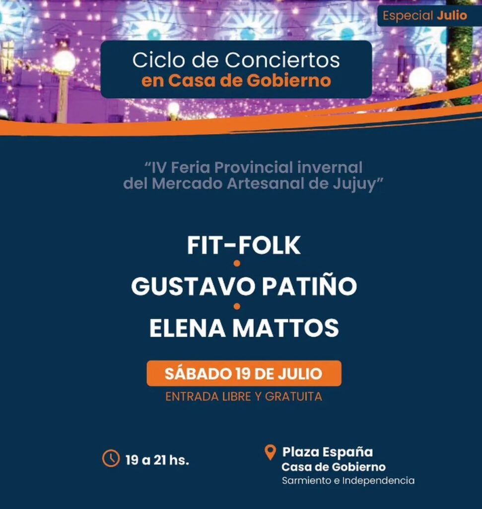Sábado 19: FIT-FOLK · Gustavo Patiño · Elena Mattos, de 19:00 a 21:00