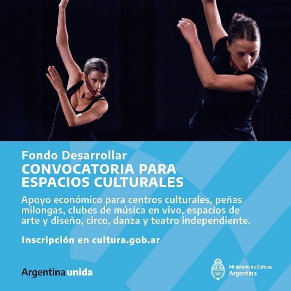 El ministerio de Cultura y Turismo informó que la Secretaría de Desarrollo Cultural dependiente de la cartera nacional de Cultura, invita a participar de la primera convocatoria del Fondo Desarrollar, que tiene como objetivo contribuir a la sostenibilidad de los espacios culturales y el trabajo cultural argentino en el contexto actual de emergencia sanitaria COVID-19. El llamado está abierto hasta el 12 de mayo del presente año.