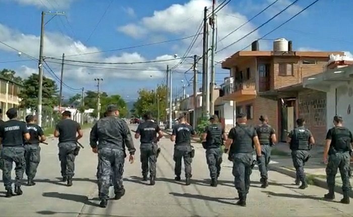 La vigilancia policial se llevó a cabo por las principales avenidas de Alto Comedero, para cumplir con la cuarentena que rige en el país.