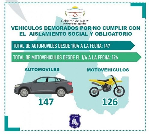 En las últimas 24 horas 71 personas fueron demoradas por infringir la normativa. En tanto, se secuestraron 273 vehículos, de los cuales 147 eran automóviles y 126 motocicletas.
