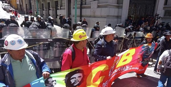 Un fuerte contingente policial, formado en torno a las calles de la plaza Murillo, donde se sitúa la Casa de Gobierno, permitió el ingreso del dirigente de la COB y otros cuatro secretarios, quienes entregaron el documento.