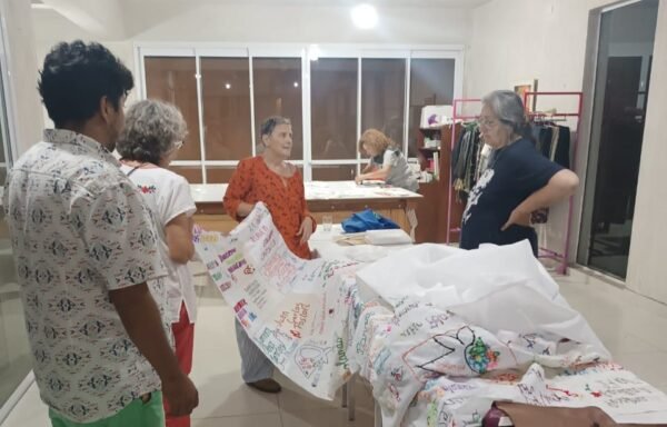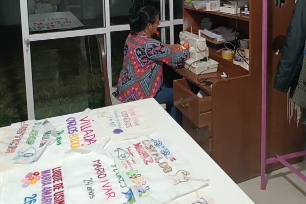 El acto colectivo no se limitó al bordado. Hubo que cortar, coser, ordenar, pespuntear, organizar, distribuir tareas y recursos. Un trabajo solidario enfocado en el detalle y en el todo.