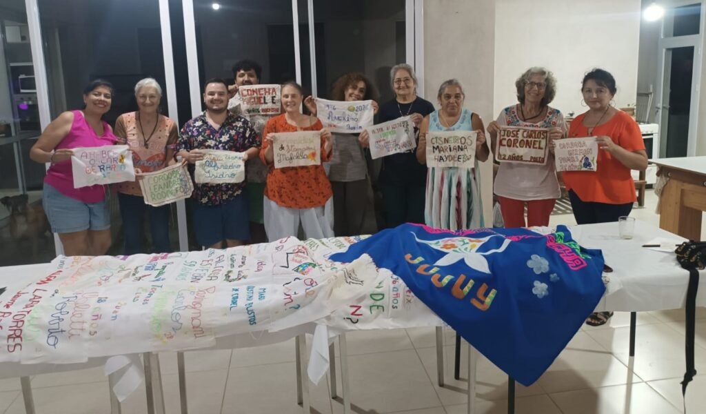 Para Luciano, «fue muy movilizante bordar los nombres y las edades, una forma de hacer memoria desde las manos, de sostener esas historias y de darles presencia». Y suma: «Siento que eso es lo más potente del grupo: cómo algo tan simple como bordar puede transformarse en un acto colectivo, en una forma de encuentro, de memoria y reflexión».