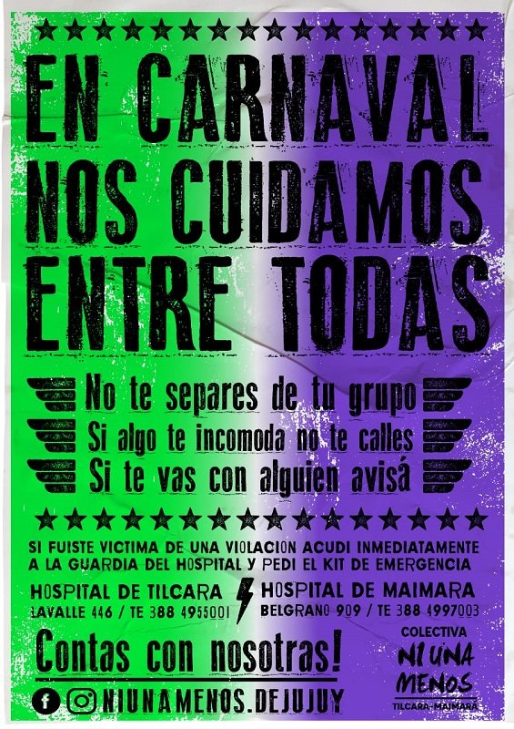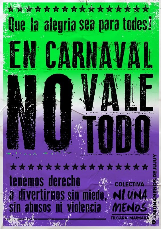 De cara al Carnaval 2020, la Colectiva Feminista Ni Una Menos Ticara/Maimará reedita ahora su campaña contra la violencia que estrenó el año pasado, sumando así un eslabón a la cadena de reclamos por el derecho a la diversión, poniendo en claro que el largamente mentado «vale todo» es una justificación inaceptable cuando se avasallan cuerpos y voluntades.