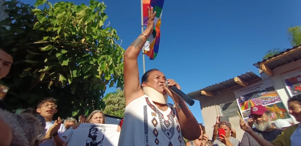 Una treintena de tupaqueros llegaron de Jujuy un día antes para acompañar a Milagro, quienes siguen peleando para recuperar todo lo que destruyo el gobierno de Morales, y que hicieron con sus manos: piletas, viviendas, escuelas, polideportivos, “todo fue abandono y destrucción, ni siquiera lo utilizaron para tener a los niños un verano bañándose ahí”, cuenta una mujer.