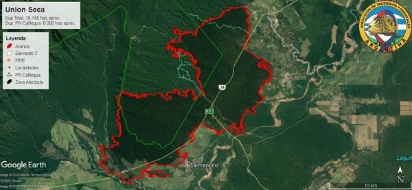 Después de más de 40 días el incendio “Arroyo Yuto-Unión Seca”, calcinó una superficie total de 19.745 hectáreas, mientras siguen las tareas para instalar líneas cortafuego y establecer un perímetro que impida el avance de las llamas.