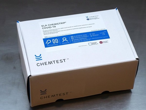 El test molecular, que se llama Ela Chemstrip y fue aprobado recientemente por la Administración Nacional de Medicamentos, Alimentos y Tecnología Médica (ANMAT), detecta moléculas del nuevo coronavirus, por lo que permite diagnosticar a personas que están cursando la infección, tengan síntomas o no, con un 95,5% de sensibilidad.