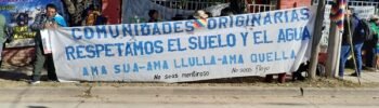 Comunidades indígenas que el lunes partieron caminando desde la Puna se concentraron esta mañana frente al Juzgado de Minas, el Ministerio Público de la Acusación y luego a la Casa de Gobierno. Piden explicaciones por la cantidad de pedimentos mineros autorizados en sus territorios sin consulta previa. Además reclaman justicia por la represión de 2023 … Sigue leyendo Comunidades de la puna rechazan emprendimientos mineros iniciados sin consulta previa