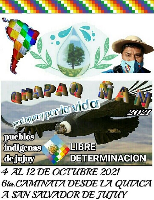 Los Pueblos Indígenas de Valles, Quebrada y Puna en la Provincia de Jujuy; reunidos en ASAMBLEA siendo las Hs. 11:00 del día 03 de Octubre de 2021, amparados en el art. 75 inc. 17 de la Constitución Nacional, Convenio 169 de la OIT ratificado en nuestro país mediante ley N° 24.071 y normativas internacionales, tales como la Declaración Universal de la Organización de las Naciones Unidas (ONU), sobre Derechos de los Pueblos Indígenas y la Declaración de la Organización de los Estados Americanos (OEA); convocamos a la Unidad de los Pueblos Preexistentes y acción de lucha pacífica en resguardo del territorio y en defensa de la Vida.