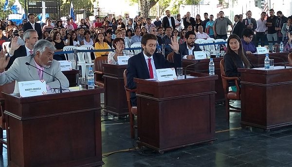 Verónica Valente, Agustín Flores, Lorena Alfaro y Roberto Brizuela son los concejales del PJ que se suman a Matías Domínguez, a quien que le restan dos años más de mandato. Por la cantidad de bancas obtenidas, correspondía que la presidencia recayera en el peronismo.