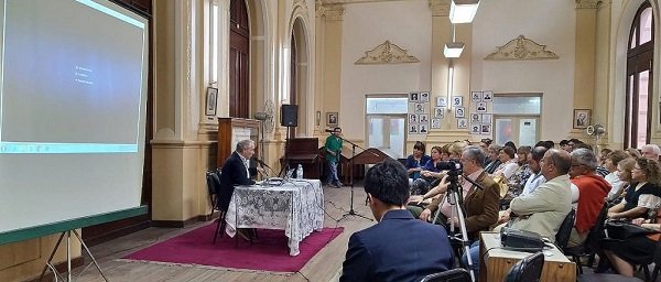 El Director de Derechos Humanos y Derecho Internacional Humanitario del Ministerio de Defensa de Nación, Jorge Szeinfeld disertó sobre la importancia de la identificación de los bienes culturales con el escudo azul de la Unesco, en las instalaciones de la Biblioteca Popular