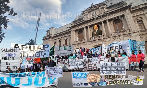 - Adiunju (docentes e investigadores de la UNJu): están en medio de un plan de lucha, con paros recurrentes y actividades de visualización; denuncian el desfinanciamiento de la universidad pública y el incumplimiento de la Ley de Financiamiento Universitario por parte del Gobierno nacional.
