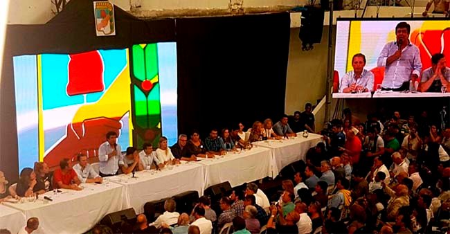 Fernando Gray dijo la frase de la tarde: «Nosotros no somos dialoguistas, ni tendemos puentes con el Gobierno, somos opositores y levantamos las banderas de Néstor y Cristina» y explotó el club Tesei y Felipe Solá aplaudió de pie