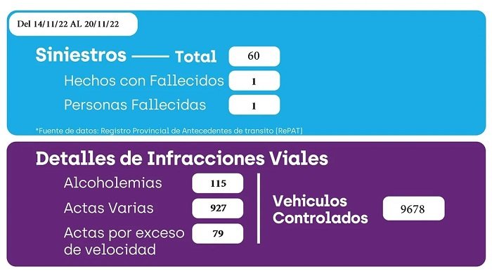 Finalmente, hubo un total 60 siniestros viales, en donde falleció una persona.