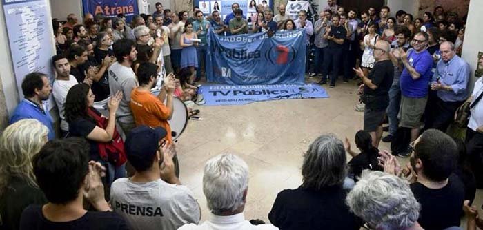 Los tres medios públicos se encuentran en asamblea permanente y con medidas de fuerza. Por primera vez en la historia, los trabajadores del sistema de medios públicos realizaron la semana pasada una asamblea conjunta, que contó con casi 400 trabajadores y constituyó una respuesta unitaria en defensa de la integridad de los espacios bajo la esfera del Estado.