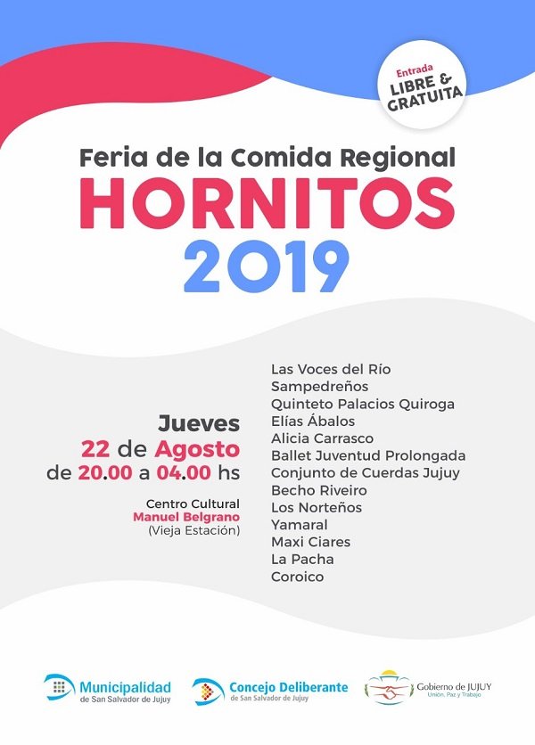 Este jueves comienza una nueva edición de la Feria de la Comida Regional, más conocida como “Hornitos” que se desarrollará desde esta jornada hasta el domingo venidero, con la participación de 30 stands de instituciones nucleados en el Consejo Vecinal y el desfile de numerosos artistas entre los que se destacan Coroico, Ternura, Los Izquierdo de La Cueva, Sentimiento, entre otros.