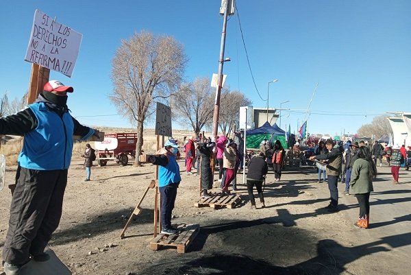 Fuera de todo sarcasmo, Martínez describió la manera en que las comunidades de la zona, con el acompañamiento de organizaciones que integran la Multisectorial contra la Reforma, llevan adelante la protesta: «Están separados por tarimas, aislados con cartones. Las dos primeras noches llegaron a soportar 10 grados bajo cero».