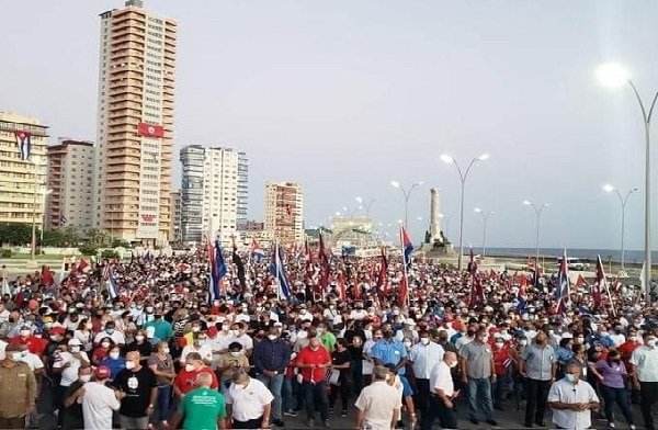 El acto de «reafirmación revolucionaria» fue la respuesta masiva a las protestas realizadas el pasado fin de semana, las mayores desde el Maleconazo del 5 de agosto de 1994. Las manifestaciones antigubernamentales reflejaron la difícil situación económica y social que atraviesa el país en medio de la pandemia, que paralizó todo el sector turismo, fundamental para el ingreso de divisas, y el refuerzo del bloqueo decidido por Donald Trump y aún vigente bajo Joe Biden.
