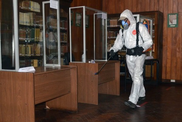 Este lunes, se inició las tareas de desinfección, a cargo de personal especializado, en la sede central del Poder Judicial de la provincia.