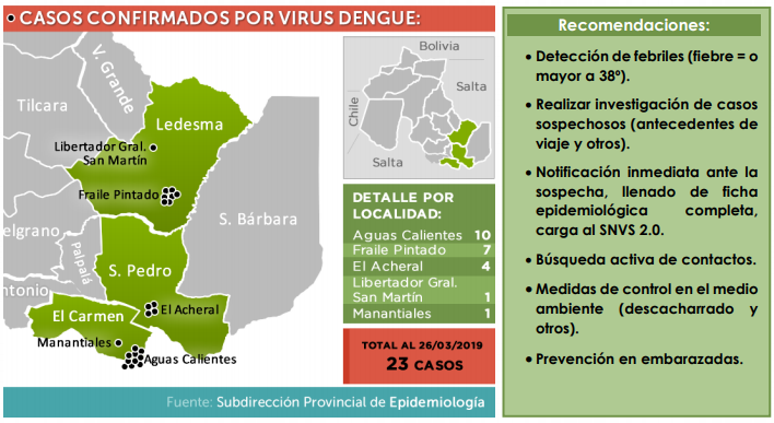 Este martes se sumaron tres nuevas personas con resultados positivos al estudio de dengue, todas de la localidad de Fraile Pintado. Hay preocupación en el área de Salud ante la cantidad de casos, y piden tomar todas las precauciones necesarias. El jueves habrá un nuevo parte del Ministerio ante los análisis de otros casos sospechosos.