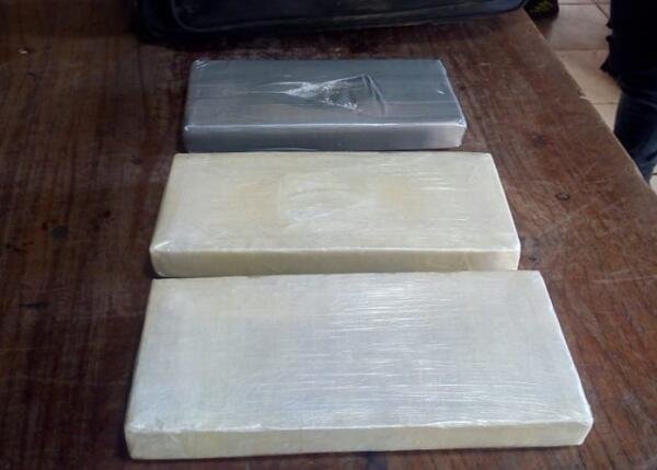 Al momento de abrir los bolsos en presencia de testigos, los gendarmes constataron que en su interior había un total de 12 paquetes en forma rectangular con una sustancia polvorienta de color blanco. Tras ser sometidos a la prueba de Narcotest, dio como resultado positivo para cocaína.