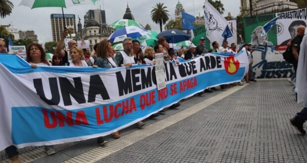 En una nueva Marcha de la Resistencia, este jueves las organizaciones de derechos humanos junto a movimientos sociales y gremios se convocaron en la Plaza de Mayo para denunciar el negacionismo y las políticas de hambre de Milei y Villarruel.