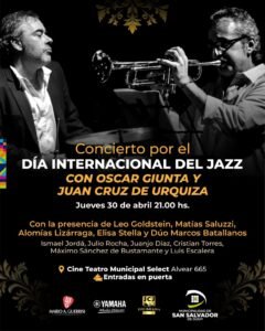 Desde la administración del Cine Select, se destacó que en el escenario brillarán dos figuras indiscutidas del jazz argentino: Oscar Giunta y Juan Cruz de Urquiza, reconocidos por su amplia trayectoria junto a grandes exponentes del género y su proyección internacional.