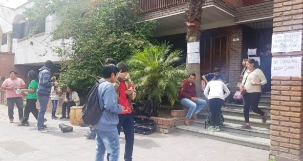 Lo que pasa es que no queremos entrar en un tire y afloje con el ministerio, poniéndonos en una lucha rígida sino tratando de contemplar la realidad que nos exponen desde el ministerio, teniendo paciencia, ya ahora es insostenible, no tenemos plata ni para ir a trabajar, ni para el trasporte, es difícil programar conciertos en la calle, salir a tocar, muchos docentes están en San pedro, en Tilcara, es programa provincial, no tienen plata para venir acá a protestar.
