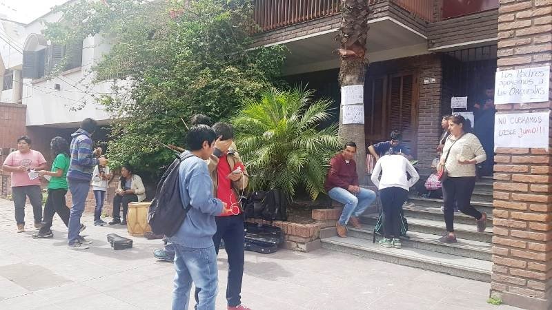 Lo que pasa es que no queremos entrar en un tire y afloje con el ministerio, poniéndonos en una lucha rígida sino tratando de contemplar la realidad que nos exponen desde el ministerio, teniendo paciencia, ya ahora es insostenible, no tenemos plata ni para ir a trabajar, ni para el trasporte, es difícil programar conciertos en la calle, salir a tocar, muchos docentes están en San pedro, en Tilcara, es programa provincial, no tienen plata para venir acá a protestar.