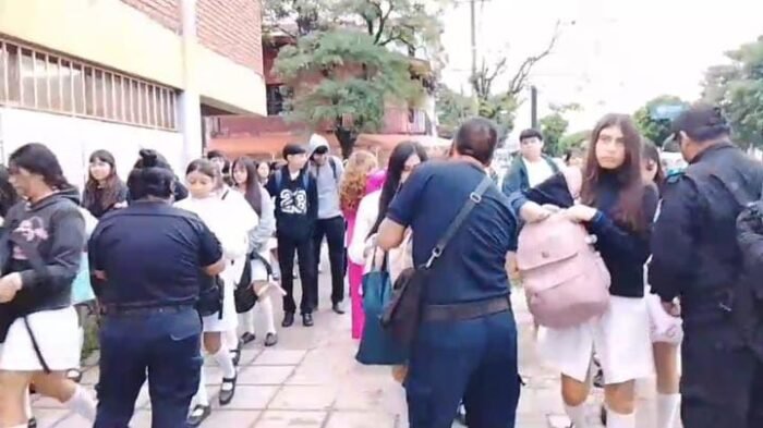 Los grafitis en baños de estas escuelas que anunciaban tiroteos llevaron a que el gobierno provincial de Sadir mandé policías a controlar las mochilas de estudiantes, que encima lleva a demorar horas en largas filas a los jóvenes, haciéndolos perder el tiempo de clases.