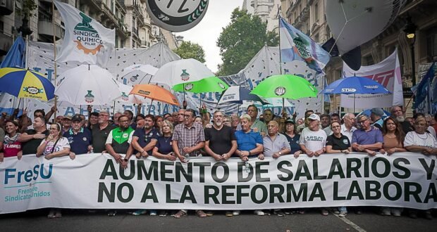 El Frente de Sindicatos Unidos (Fre-SU), un nuevo colectivo sindical con gremios combativos, convocó en las últimas horas a una movilización para el viernes desde las 12, cuando el Senado trate la reforma laboral, a la que se sumará además un paro nacional de ATE, que conforma junto a la UOM, Aceiteros, Aeronáuticos y las dos fracciones de la CTA, entre otras organizaciones.