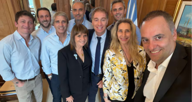 Los ministros Diego Santilli (Interior) y Luis Caputo (Economía); la jefa de bloque de La Libertad Avanza (LLA) en el Senado, Patricia Bullrich; la secretaria general de Presidencia, Karina Milei; el titular de la Cámara de Diputados, Martín Menem, y el armador nacional Eduardo “Lule” Menem, estuvieron este lunes en Balcarce 50, y se espera que varios vuelvan a estar presentes hoy.