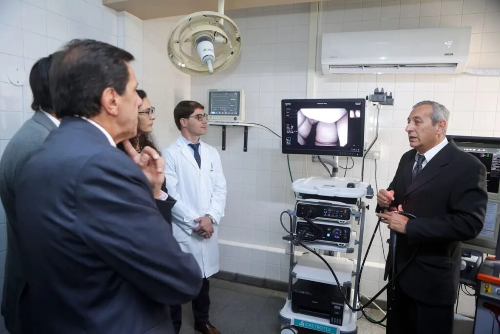 El gobernador de Jujuy, Carlos Sadir, y el ministro de Salud, Gustavo Bouhid, presentaron la nueva torre de videoendoscopía digestiva de alta definición, equipamiento que se incorpora a la Unidad de Gastroenterología del hospital “San Roque” y potencia las capacidades de diagnóstico y prevención del cáncer.