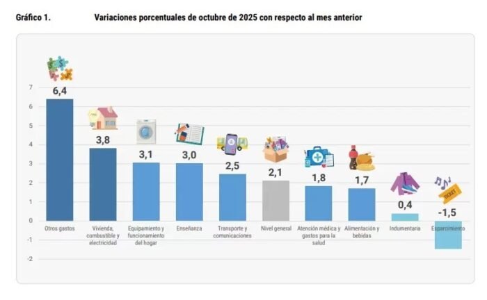 El único rubro que registró una variación negativa fue Esparcimiento, con un -1,5%.