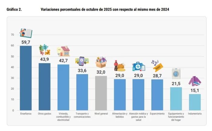 Cabe recordar que el Instituto Nacional de Estadística y Censos (Indec) informó que la inflación de octubre en el país fue de 2,3%, con un acumulado interanual del 31,3%.