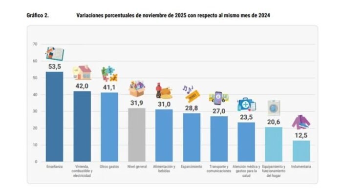 En la comparación interanual, la inflación alcanzó el 31,9%, mientras que en lo que va del año acumula un 27,5%.