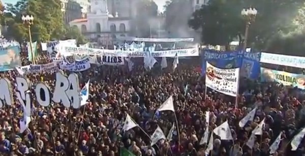 La expresidenta Cristina Fernández de Kirchner difundió un mensaje grabado a los cientos de miles de manifestantes que colmaron este miércoles la Plaza de Mayo. Luego habló unos pocos minutos en directo.