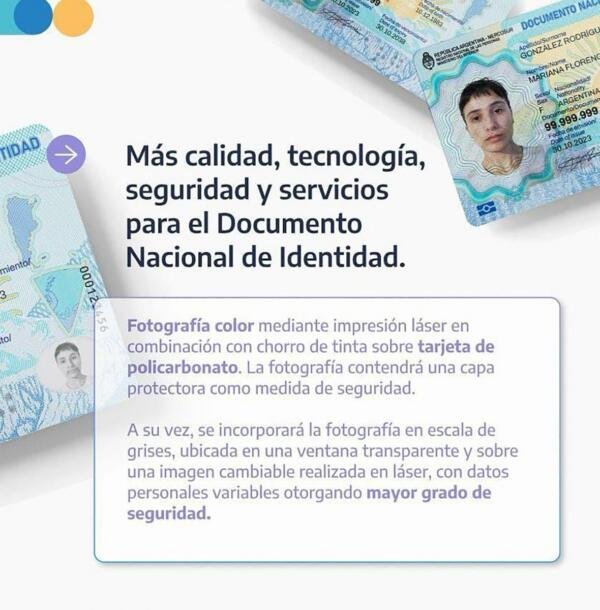 «El nuevo documento -precisaron- será impreso en láser sobre policarbonato, incorporando medidas técnicas de seguridad física para mejorar la seguridad, facilitar la verificación visual e impedir su falsificación; a la vez que el policarbonato es un material más resistente y duradero».