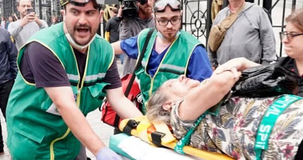 En ese marco, Beatriz Blanco, que marchaba con un bastón, fue empujada por un efectivo, cayó de espaldas y golpeó la cabeza contra el asfalto. La herida en la nuca requirió puntos de sutura y atención hospitalaria.