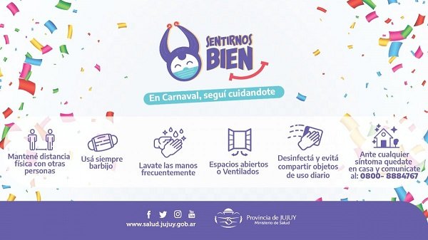 También en Carnaval, los cuidados dependen de nuestra actitud individual y colectiva. Por consultas, se encuentra a disposición la línea 0800 – 888 – 4767, las 24 horas o el servicio de telemedicina de 8 a 20 horas en http://salud.jujuy.gob.ar/asistenciavirtual/