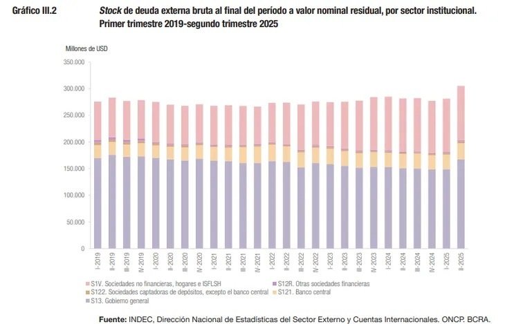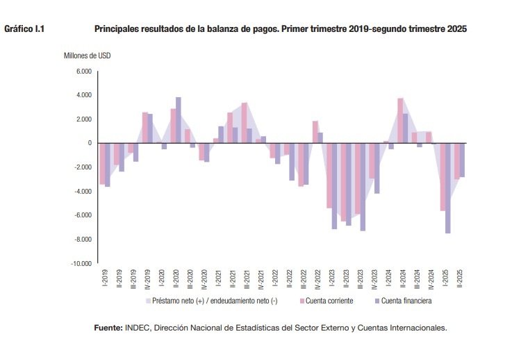 El Indec dio a conocer su informe trimestral de balanza de pagos, posición de inversión internacional y deuda externa del segundo trimestre de este año. Todos los datos relacionados con el sector externo muestran luces de alarma. Es que, la deuda externa escaló en apenas tres meses hasta los U$S 305.043 millones a la vez que la Cuenta Corriente de la Balanza de Pagos exhibió un déficit de U$S 3.016 millones en apenas tres meses.