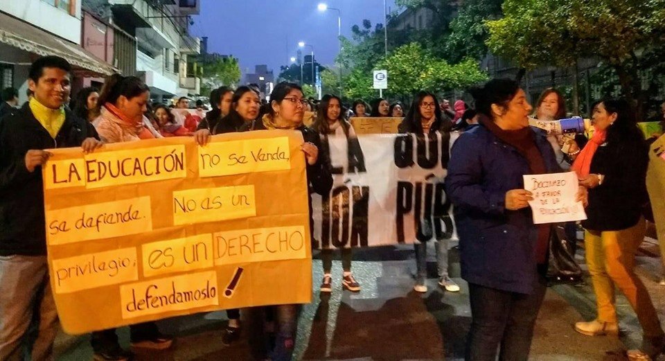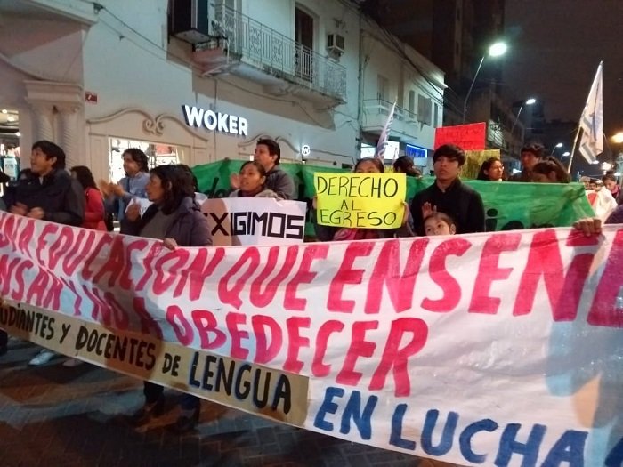 Los estudiantes iniciaron el recorrido demostrando el repudio total a las políticas educativas del gobernador Gerardo Morales y la Ministra de Educación Isolda Calsina que utilizan a Jujuy como laboratorio del ataque a la educación pública, sobre todo en los institutos terciarios, convirtiéndola en la única provincia que ha cerrado carreras y que deja a cientos de alumnos sin la posibilidad de educarse, y a docentes y administrativos sin trabajo.