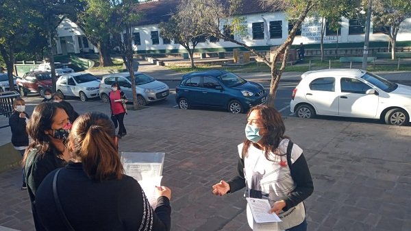 Los autoconvocados del colectivo educativo también volantearon en los alrededores del Ministerio de Salud de la Provincia, dejando una carta para la comunidad educativa y en general, para concientizar de la necesidad de suspender las clases presenciales por las virtuales, con sus respectivas garantías de conectividad y recursos tecnológicos, que debe brindar los gobiernos. A su vez, exigir la vacunación masiva de toda la población.