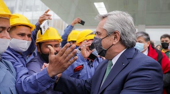 Allí, Fernández saludó a los trabajadores y trabajadoras, cortó la cinta de inauguración y descubrió una placa conmemorativa del evento.