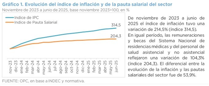 Otro dato que arroja el informe de la OPC es que a junio de este año el Sistema Nacional de Residencias Médicas alcanza a 3176 agentes, de los cuales 1832 (57,7%) son becarios y 1344 (42,3%) son residentes.